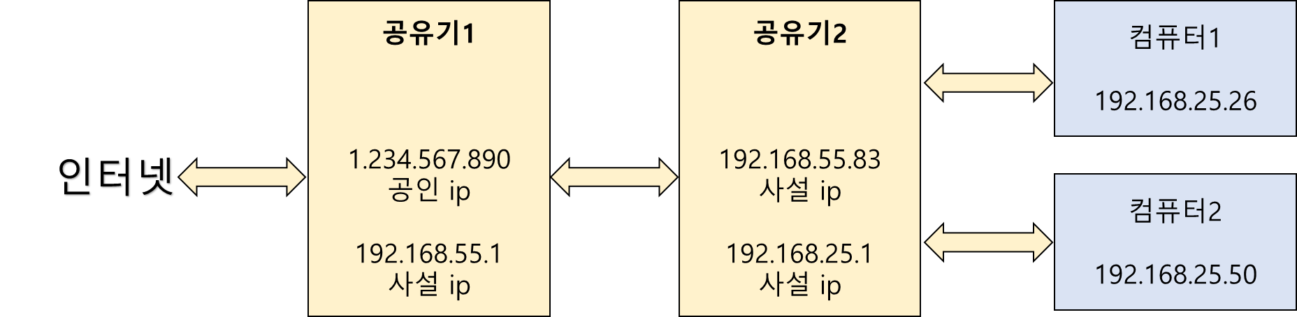 사실 2번까지만 해도 인터넷-공유기1-공유기2 연결이 된 거나 마찬가지다.