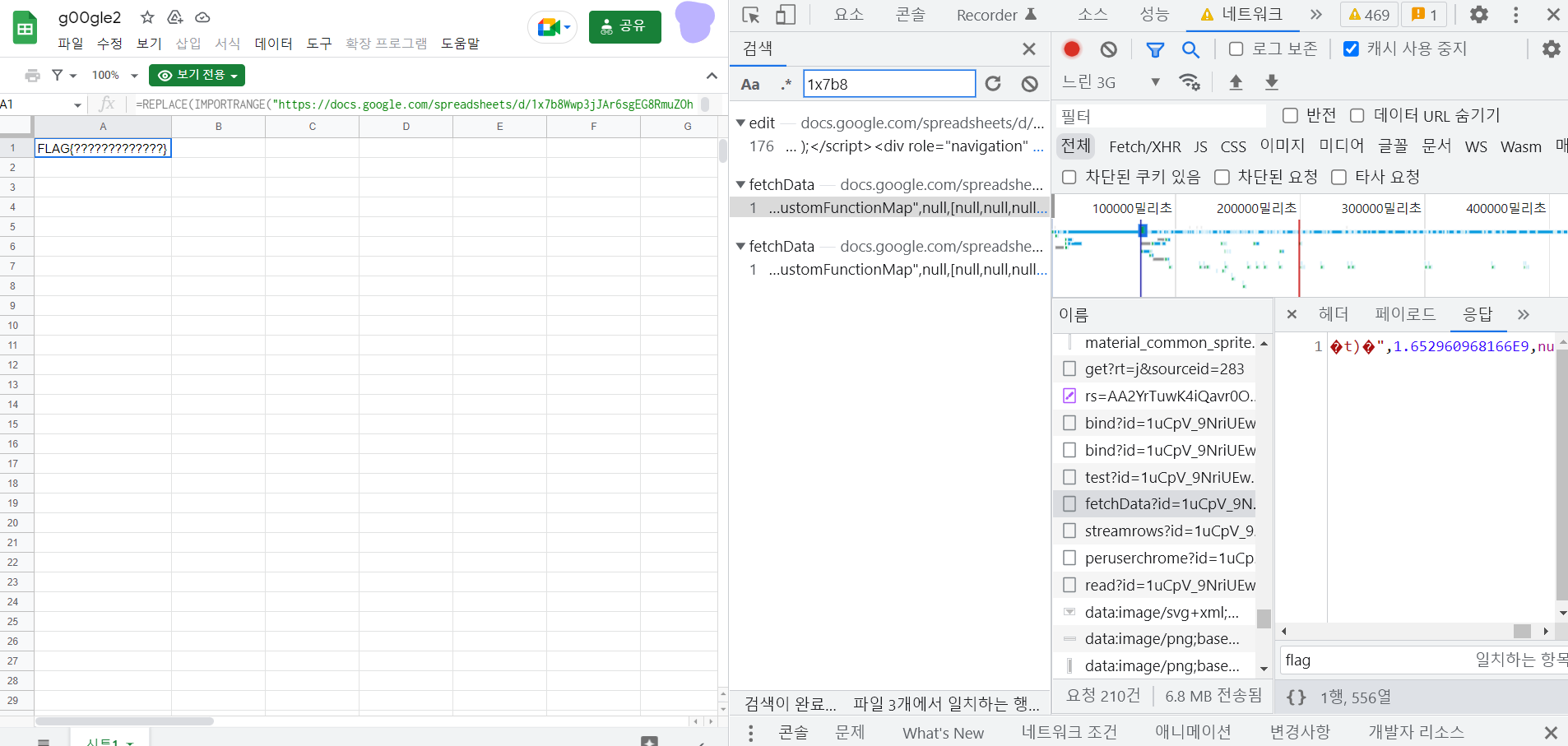 개발자 도구를 켜고 네트워크에 저 주소를 입력해봤다.