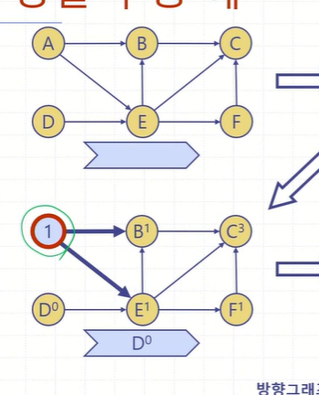 여기서는 A와 D가 맨 앞에 올 수 있다.